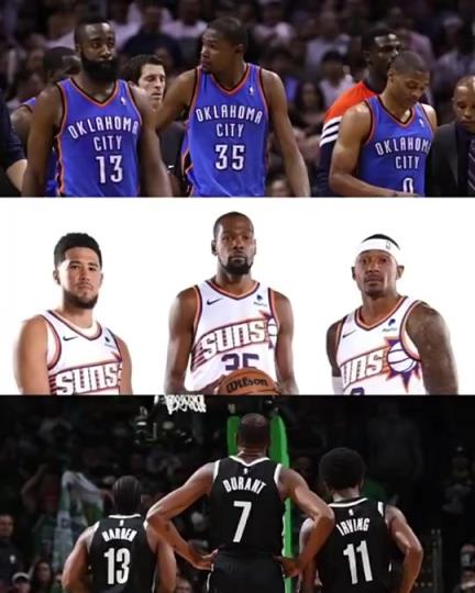 杜蘭特各階段三巨頭勝率:籃網(wǎng)時代13-3,太陽時代拉完了